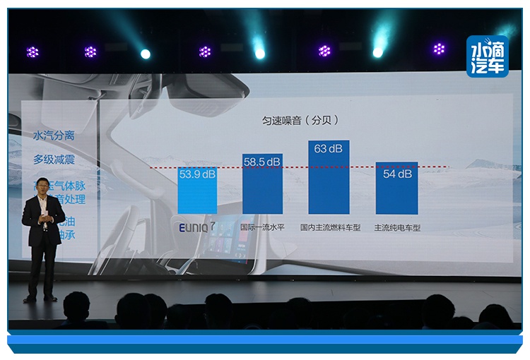 作为全球首款氢燃料电池MPV,上汽大通MAXUS EUNIQ 7针对NVH性能进行了优化,车辆应用水汽分离、多级减震设计、高压脉冲静音、无油空气轴承等创新技术手段,全面攻克了氢燃料电池车NVH控制的难题,性能比肩主流纯电动车型,匀速噪音仅为53.9分贝。