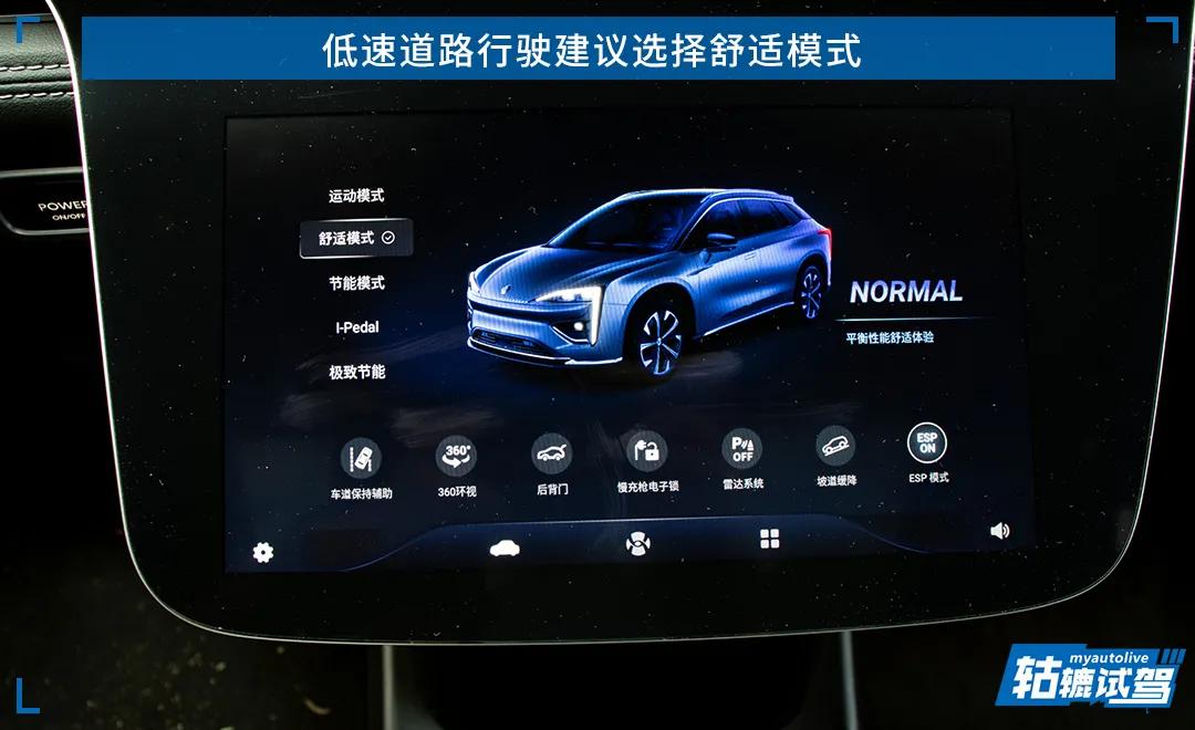 轱辘哥认为,在城市道路驾驶时选择舒适模式是最适合的,这时候车辆的电力输出和动能回收强度都很平和,堵车时频繁加减速也有很好的舒适性。如果想加速超车,只要用力踩电门就能轻松完成超车动作。而在运动模式下,车辆的电力输出太灵敏,长时间低速行驶会让驾驶员的神经比较紧张,建议主要在高速路段才使用。