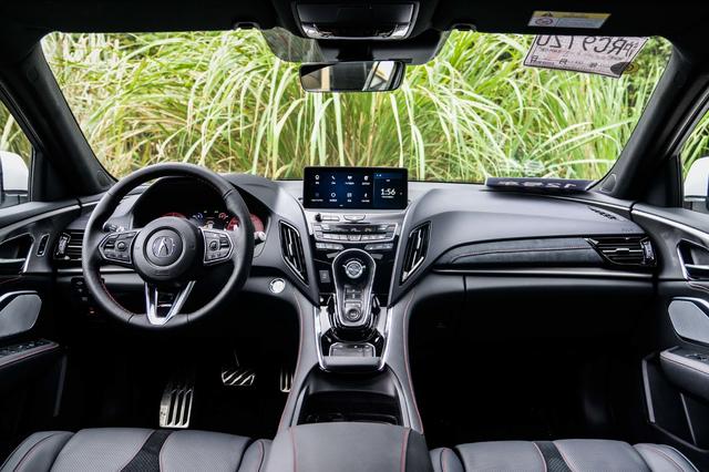 来到讴歌RDX A-Spec运动款车内,运动气息营造的不错,对称式设计的中控台在做工和用料的应用都比较考究,并在车内多处使用了大量红色缝线进行点缀,副驾驶面板上采用了Alcantara翻毛皮材质进行装饰,手感细腻。