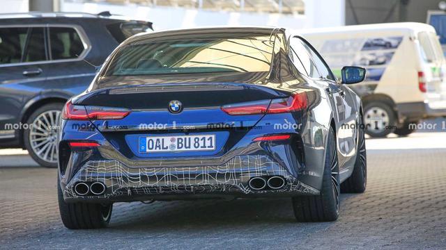 车尾部分,从谍照来看,测试车采用了双边共四出的圆形排气以及造型有所调整的后扩散器,这也与宝马M8 Gran Coupe的设计有所区别。下包围细节部分谍照被包裹着伪装贴纸,我们还不能一睹真容。