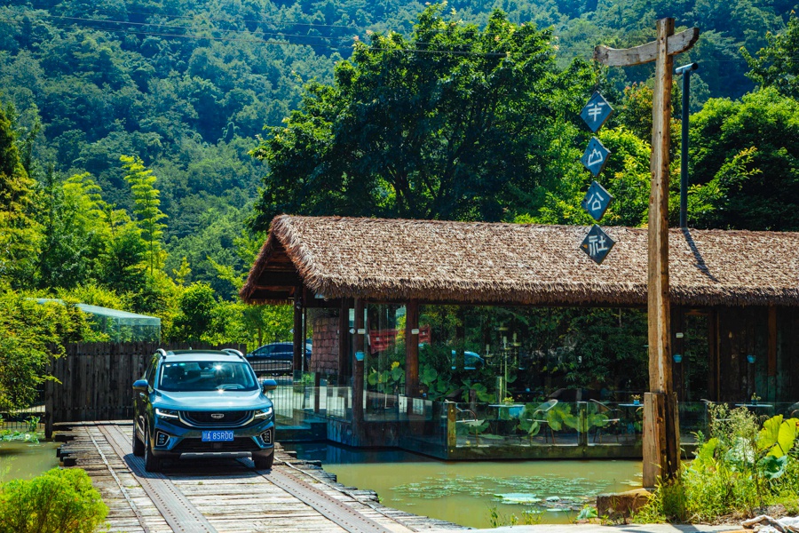 通往目的地半山隐庐的山路是条普普通通的双车道,甚至都不算标准的景区公路,也就是一条不宽的乡道而已。