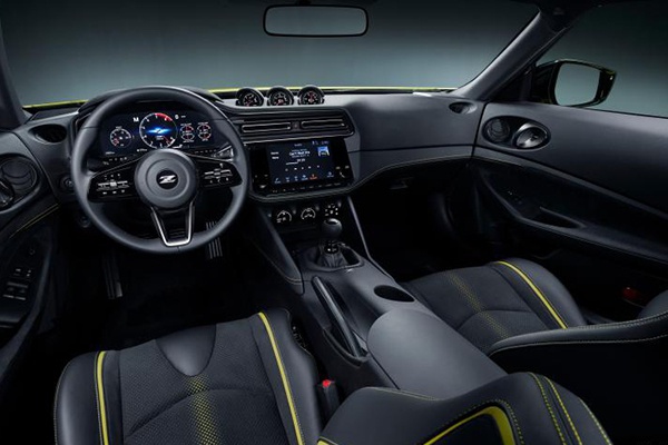 在车厢内部,能够明显感觉到Z Proto风格上变得现代了不少,双12.3寸液晶大屏彰告世人这是一辆走在时代最前沿的跑车。再看整车风格,无论是中控布局还是档杆区域的设计,都还是能够感受到形如370Z一般的日产包裹感设计;虽然Z Proto是全新车型,但那种熟悉的感觉依然存在。除了这些以外,在中控台顶部我们还发现了圆形三联表的存在,喜欢JDM的朋友们相信不需要我过多解释了吧。