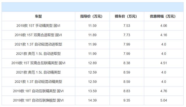 价格方面,老款(2019款)英朗目前最高可享5.04万元现金优惠,相当于打了6.5折,降价幅度相当给力。至于新款的2021款车型,它也有4万元的优惠幅度,所以总体来说英朗这车的优惠都是很不错的。推荐购买2021款典范1.5L自动精英型,1.5L最高配,减去4万元优惠之后,裸车价不到9万,配置齐全,性价比很高。