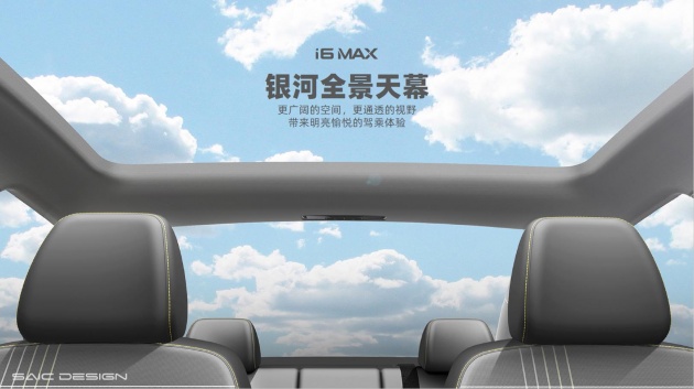 而超大面积的全景天窗也是荣威i6 MAX外观设计的亮点之一,其外部采用全黑的玻璃穹顶,采光面积可达3m²,并且拥有180°超广的宽阔视野。使不管是前排还是后排都能享受通透车内空间。而考虑到遮光和隔热问题,其天窗采用遮光率达30%-92%的渐变遮光膜和遮光率达97%的电动遮阳帘,有效隔绝紫外线侵扰。