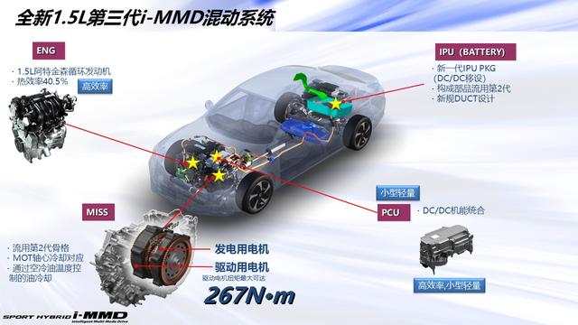 参数上,1.5L阿特金森循环发动机最大功率109马力,最大扭矩135牛米,热效率高达40.5%。驱动电机最大功率96千瓦,最大扭矩267牛·米,综合功率可达154马力。底盘则是前麦弗逊、后扭力梁式非独立悬架。