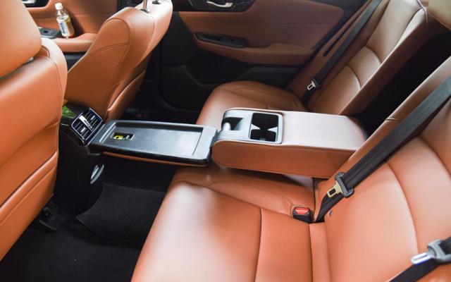 此外,后排除了空间巨大、媲美中型车之外,凌派锐·混动上所拥有的可翻折中央扶手在这台享域锐·混动上面也是有的。只需拉下来,中间就可与前排中央扶手形成一个长桌板,放一些数码设备、书籍什么的都是没有问题的,还能让后排乘客拥有享受行政级座驾的感觉,类似于独立座椅的设计,逼格满满。