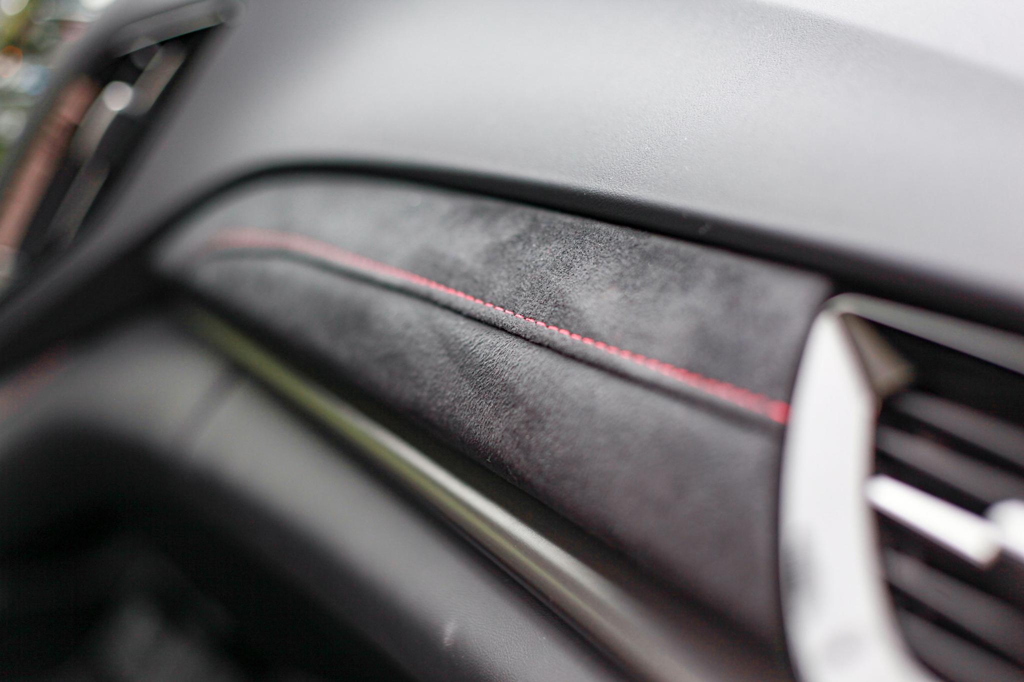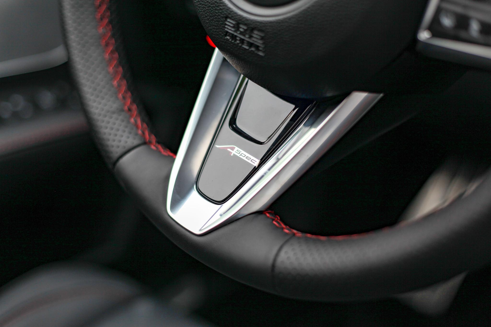 内饰方面少不了A-spec的标志,方向盘、踏板都安装上了。仪表盘的速度表和转速表,改成了白底红字的配色,中控台上加入的反皮材料,座椅提供红色和黑色选择。简单的总结,RDX A-spec更像是年度改款车型。