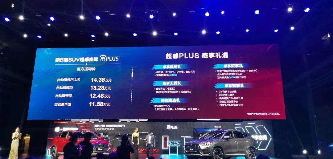 配置方面,宋PLUS全系标配倒车雷达、倒车影像、定速巡航、手机钥匙、皮质方向盘、皮质座椅、自动空调等配置,中高配车型还配备丰富的主动安全系统、车厢氛围灯、行车记录仪、感应电动后备箱、全速自适应巡航、360°影像等功能。