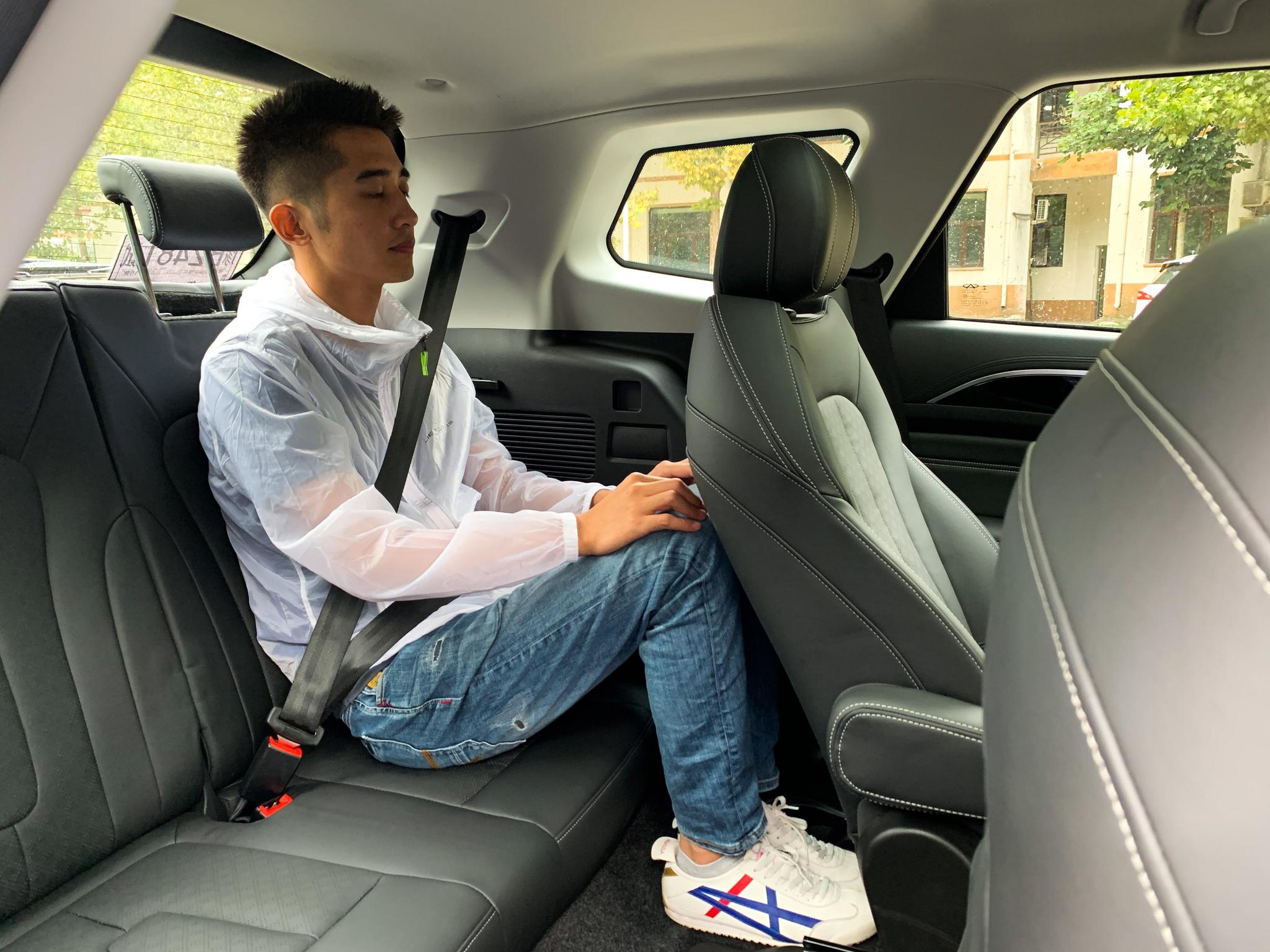 本人身高180cm,前排调整到合适坐姿后,第二排头部和腿部都有超过一拳的距离,整体表现还算优秀;相比之下第三排腿部空间稍显局促,坐垫长度很长,但因为高度较低,所以腿部的支撑会略有欠缺,不过第三排座椅本来也只是为了应付偶尔的短途使用而已。