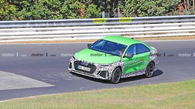 最近,全新奥迪RS 3正在纽博格林赛道上进行测试,我们也看到它的最新样子。外观上和全新奥迪S3没啥差别,不过前脸设计更凶悍。新车还把四连环LOGO、前后侧翼子板、侧裙遮挡了起来,可能会采用更宽大的翼子板和更激进的侧裙。另外我们从谍照中隐约可以看见,新车将配备蜂窝网状座椅以及HUD抬头显示。动力预计搭载2.5T直列5缸涡轮增压发动机,最大功率400马力,不过传言还会有450马力版本出现。传动方面将匹配7速双离合变速箱与quattro四驱系统。(图片来源于motor1)