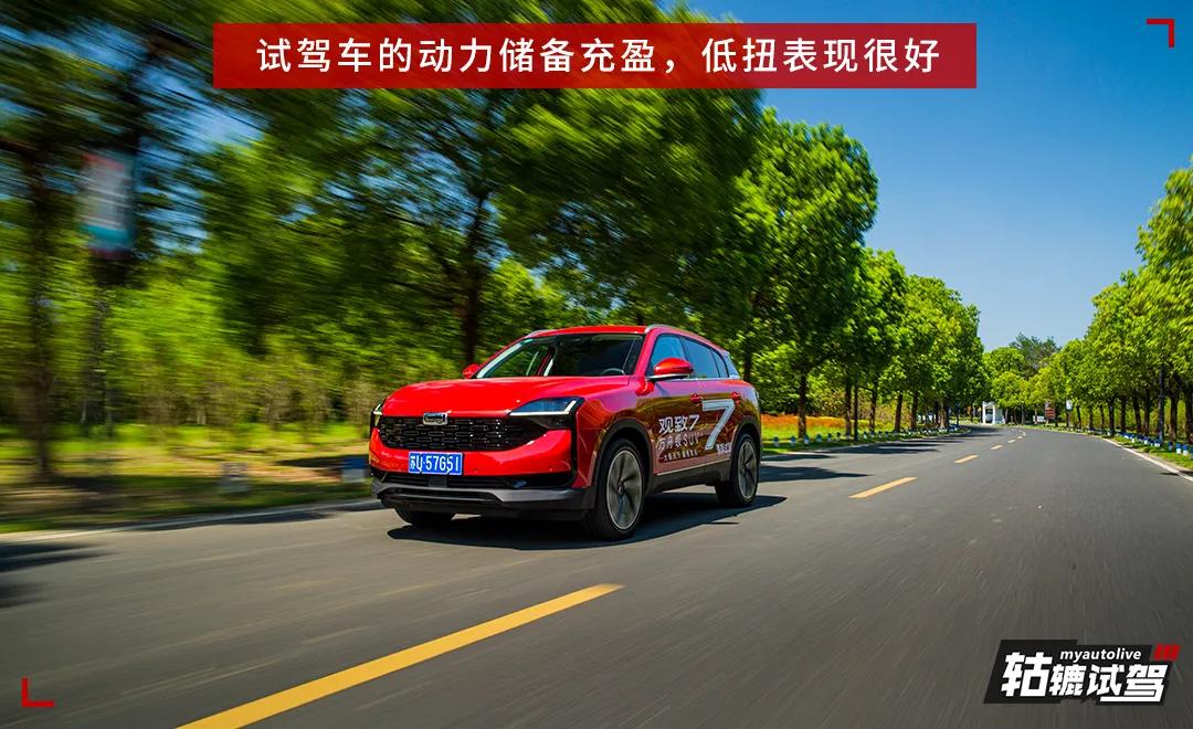 这款发动机的表现正如轱辘哥所料,拉动观致7非常轻松,在舒适和运动驾驶模式下加速超车都很从容,并且得益于发动机在低扭区间内的动力输出比较灵敏,车辆在低速行驶时进行加速还会展现出强劲的动力性能,运动模式下轻踩油门甚至会突然窜出去。