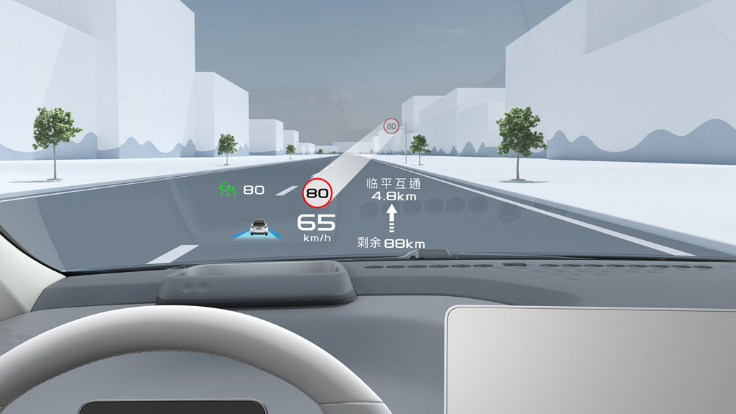 在领略平潭美景的同时,几何C的HUD投影式数字平显系统,可以将时速、导航指示灯等重要信息投射到前方挡风玻璃,赏景同时确保行车安全。