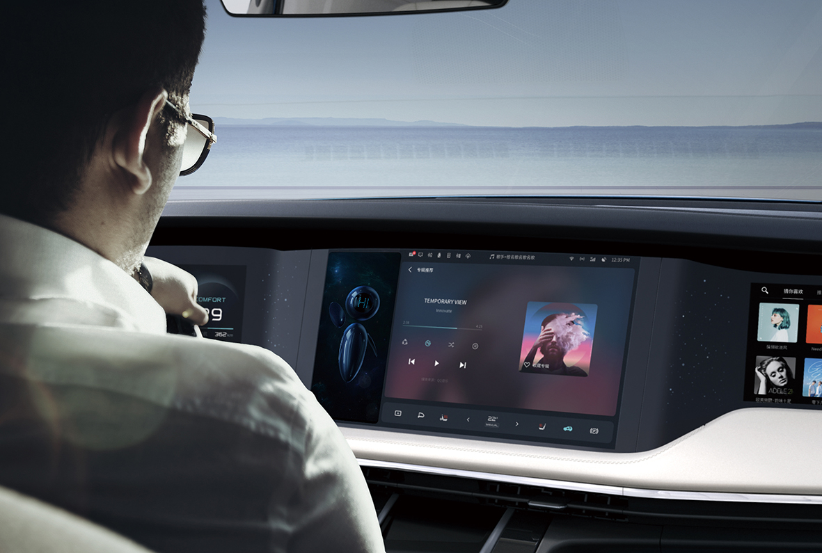 在智能数字化座舱方面,天际汽车打破常规。车内设置包括仪表、中控屏、副驾屏幕及后排双屏在内的5块高清屏幕,首创多屏动态推送,实现信息、娱乐、音乐、影视等内容的播放、同步和分享,让前后排乘员不再“割裂”。