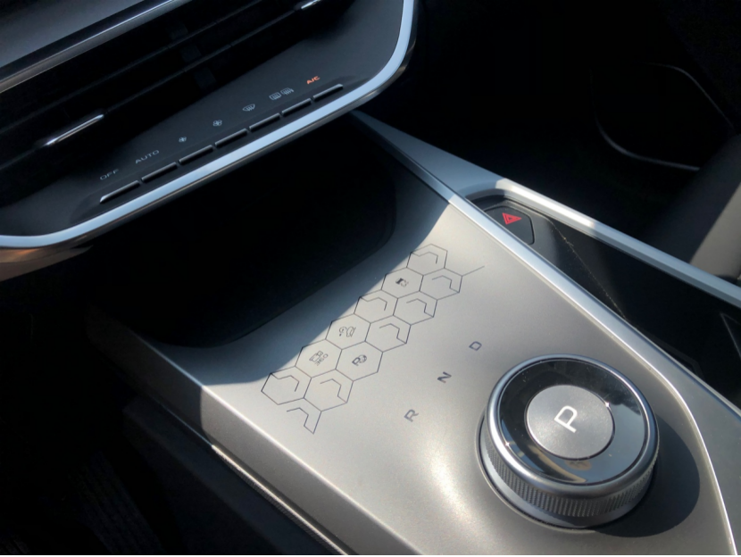 空调的控制区域保留了原始的物理按键,这一波操作很“奈斯”!E-touch中央超感控制区,通过触摸的方式就可以将各个功能激活或者关闭。之前几何A上出现的功能标识反光的问题,如今在几何C上已经完美解决了。实不实用放一边儿,但这种操作感觉确实挺新潮的,有机会你也可以亲自试一试!电子旋钮式换挡,扭动阻尼手感不赖,像我这种强迫症患者已经被成功征服了。