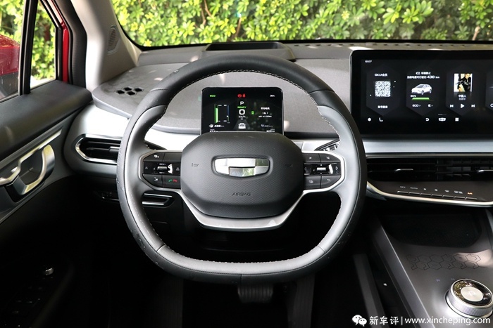 和外观设计所受到的局限性相比,内饰设计布局可操作的自由度就高很多。来自几何家族式的内饰设计风格,在经过几何A上身再优化之后,搭载在几何C身上时整体完善度已经很不错。例如空调控制区换成了实体按钮,挡把前方的按键也增加了亮度识别。