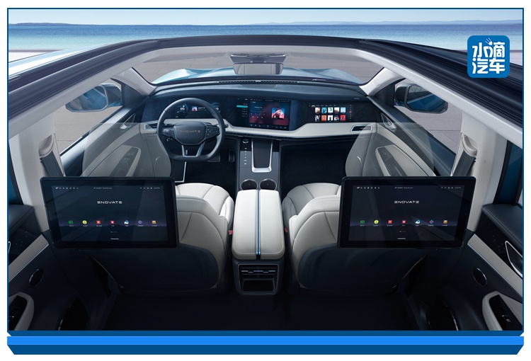 车内的五块屏幕分别为全液晶仪表、中控大屏、副驾屏幕及后排两块屏幕,可实现多屏动态推送,实现信息、娱乐、音乐、影视等内容的播放、同步和分享,而五块屏幕的尺寸都相当可观,最大的中控屏幕达到了15.6寸,液晶仪表和副驾驶液晶屏幕同为12.3寸,而两块后排屏幕则都是12.8寸,五块屏幕总计尺寸65.8寸。
