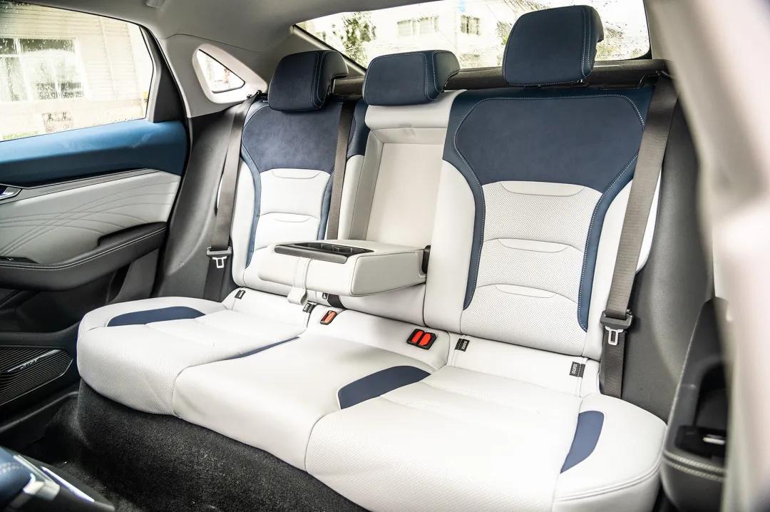 后排的座椅则是与前排稍有不同,填充物比起前排要更加软润一些,靠背角度不错,可以舒服的躺上去。至于空间,其实也不需要担心,毕竟有2800mm轴距在那里摆着,哪怕是174cm身高、较胖身材的体验者坐进去也有两拳以上的腿部空间。