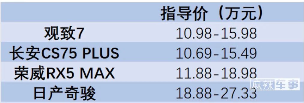 与长安CS75 PLUS (配置|询价)、荣威RX5 MAX、日产奇骏 (配置|询价)等同级竞品相比,观致7不仅在售价上更有诚意(正式发售的指导价比预售价还低),而且观致7还带来了更加有诚意的购车政策。