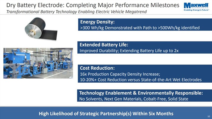 既然命名为超级电池日,不拿出点电池方面的干货怎么对得起这个名字呢?特斯拉之前就已经溢价55%收购了全球领先的超级电容器制造商Maxwell,而Maxwell在“超级电容”、“干电极”等领域有着技术领先的优势。我们很期待特斯拉能将超级电容应用于动力电池上,给充放电性能带来质的飞跃;同时,根据Maxwell高管透露的消息,它们已经开发出干粉添加剂,让阳极和阴极活性物质混合到油墨中的粉末,可以在不干燥的情况下被压在薄金属箔片上,进一步改善电池制造工艺。