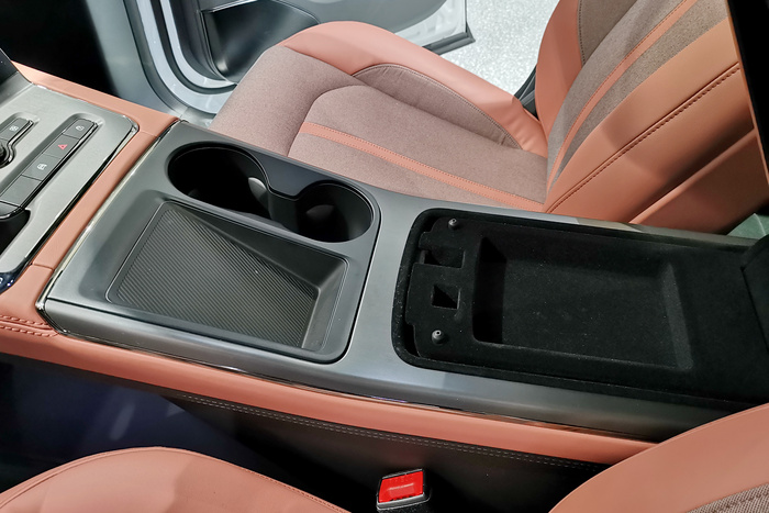 车内储物方面,蔚来EC6的设计与ES6完全相同,车内除了没有地图袋和手套箱,其他常规的储物位置基本都做了储物格,并且尺寸都比较大。车内储物最大的亮点当然是在中控台,上层有角度合理还带无线充电的手机专属位置,下层有尺寸巨大、手提包都塞得下还自带小挂钩的女王专属储物格,有粗有细,设计非常合理。