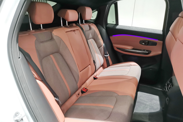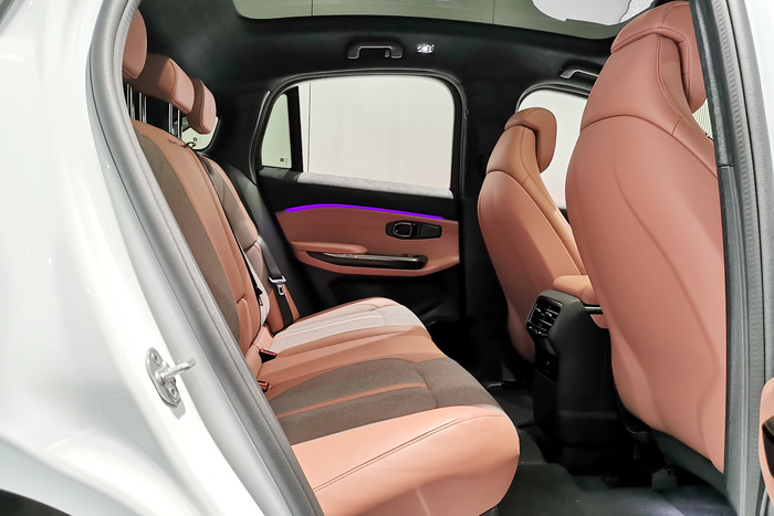 作为一台车长超过4米8的中型SUV,蔚来EC6的车内纵向空间自然是非常充裕的,而且使用了织物面料之后,它的座椅会比蔚来ES6更加柔软,乘坐舒适性有所提高。不过,由于遛背造型的影响,EC6后排头部空间表现一般般,超过180cm的人坐直了容易顶头,只能瘫着点坐用腿部空间换取头部空间。