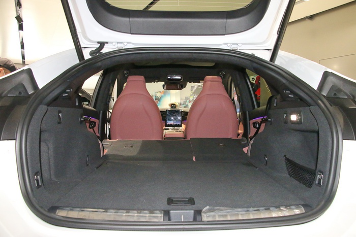 蔚来EC6尾箱同样标配两层可调隔板、12V电源、挂钩、锚点和小网兜,隔板位于上层时放倒后排座椅可以形成一个较为平整的地台。