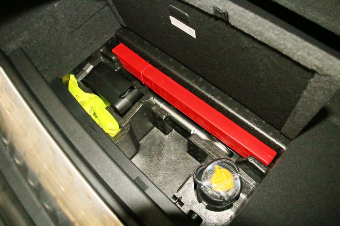 蔚来EC6并没有配备备胎,打气泵、补胎液等随车工具位于尾箱地板下方。