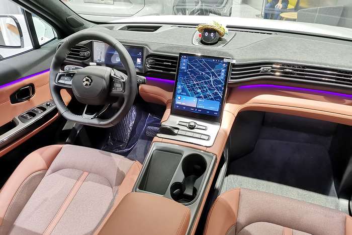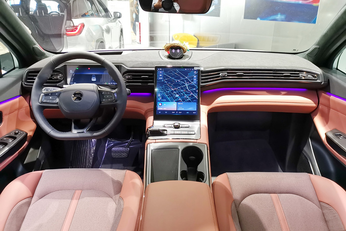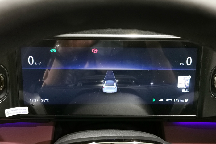 其他的配置基本就和蔚来ES6一样了,9.8英寸全液晶仪表、11.3英寸中控大屏、10色氛围灯、前排双层隔音玻璃、前排座椅加热等配置都是标配,最低配也是“高配”。