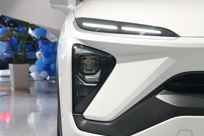 蔚来EC6全系标配分体式LED大灯,同时前后流水式转向灯和带转向辅助的LED雾灯都是全系标配,EC6的前转向灯和LED日行灯是一体的,打转向时上面的白色眯眯眼日行灯会变成黄色的流水式转向灯。