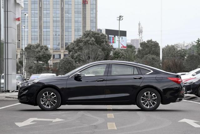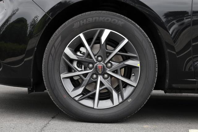 红旗H5的侧面营造出一种很强的低趴效果,车窗与车门的比例很协调,加上C柱的溜背,一种轿跑范儿就出来了。另外,1.5T车型配备了17寸的枪灰色轮毂,造型比较凌厉,而轮胎规格为225/55/R17,品牌为韩泰。