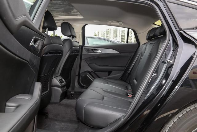 2875mm的轴距给后排带来了巨大的空间优势,一般体型的成年人,在后排翘个二郎腿基本也没啥问题,不足的是地台中间部分隆起还是有一些高度的。好在天窗的采光面积比较大,而且配备了后排空调出风口和两个USB接口,所以总体还算友好的。