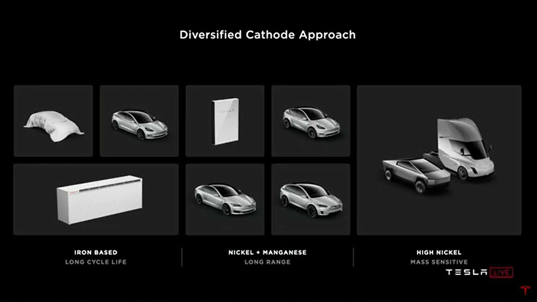 得益于成本的降低,马斯克现场宣布未来会有一辆售价约2.5万美元全新车型诞生。另外,磷酸铁锂电池在特斯拉产品序列中也会大量使用。对于低端车型,将使用磷酸铁锂电池;中等尺寸车型,使用现有的含镍电池。而类似Semi 和Cybertruck 这类车型,则会使用高镍电池。