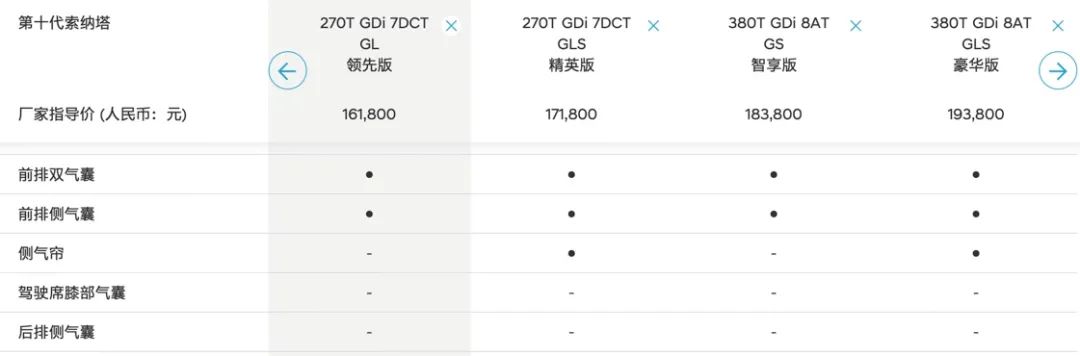 横观国内中级车市场,主流车型如天籁、凯美瑞 (配置|询价)、帕萨特(2020款)等基本上都是全系标配所有气囊了。而国产十代索纳塔却并不是,在配置上还是玩以前那一套。