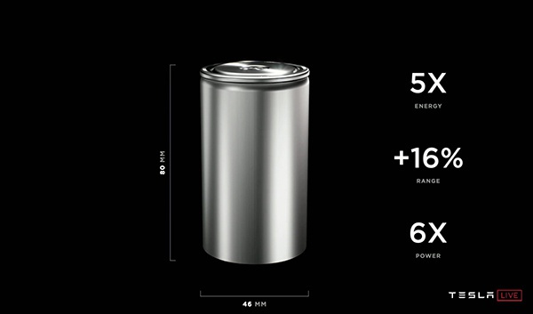 作为当日的最重磅消息,特斯拉宣布未来将采用全新4680电池,也就是我们此前曝光的“饼干盒”电池。新电池尺寸较比现款车型而言要更加地大,直径为46mm,高度为80mm;在无极耳技术的加持下,4680电池拥有着更低的内阻,直接体现为电池的能量密度较比此前提升了五倍,续航能力提升16%。
