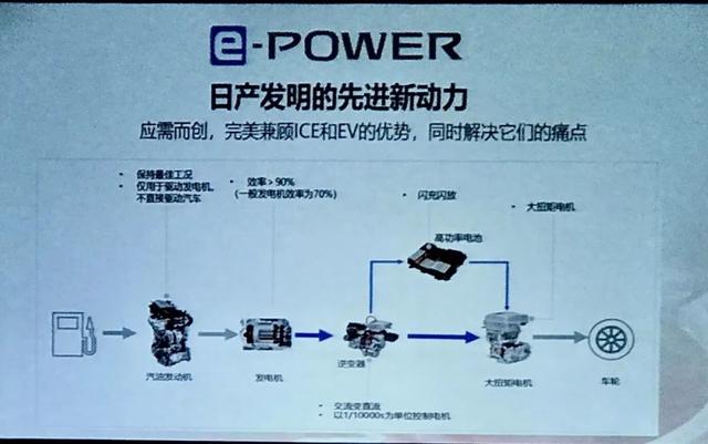 据了解,e-Power是一种全新的动力技术路线,区别于现在所有油电混动形式,e-Power不是“油+电”,而是首创“油发电”,简单来说这种动力系统就是随车配一台汽油发动机,然后用发动机发电由电动机驱动车辆。