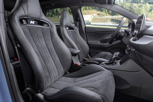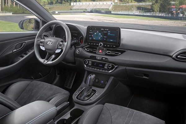 在车厢内部,新款i30 N的造型与现款车型基本上保持一致,依然是采用了现代最新的家族式设计手法。与一般性能车不同,现代i30 N并没有采用车内大量撞色缝线的设计手法,仅仅是在几个必要的地方贴上代表着性能的“N”标识,并且将座椅换装成了一体式运动座椅。