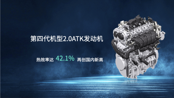 动力强、响应快、油耗低是“钜浪动力”系列动力总成的共同特性,第三代1.5L、2.0L发动机扭矩相比上一代提升超过20%,发动机响应性提升30%。其热效率表现尤其突出,在中汽中心华诚认证推出的发动机热效率认证中,这两款发动机分别获得40.48%、40.23%的热效率认证,领先同级;更为可喜的是,第四代2.0ATK发动机获得42.10%热效率认证,代表了目前汽油机产品热效率的世界领先水平。