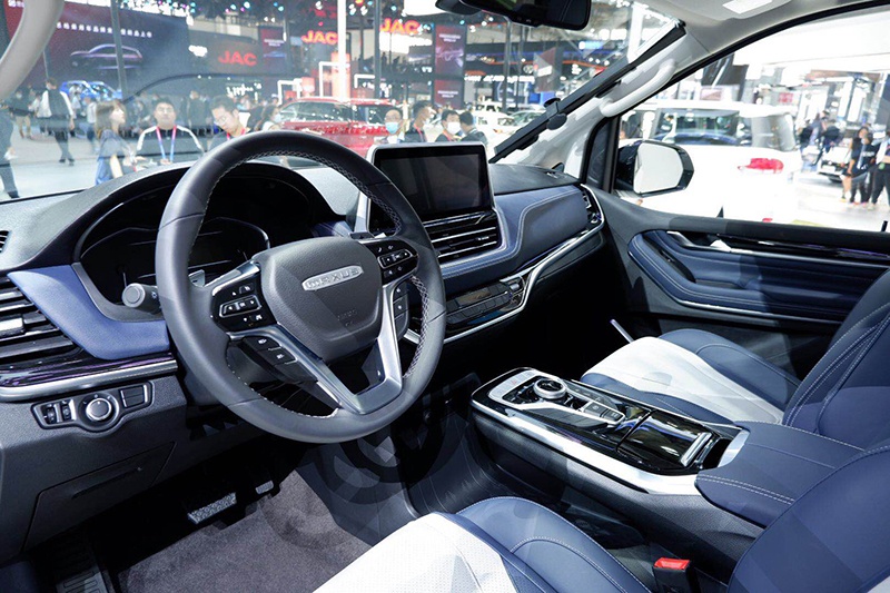 内饰部分,新车整体采用了白+蓝的颜色搭配,显得十分高贵,三辐式多功能方向盘搭配悬浮式中控触摸屏使其科技感倍增。细节部分,新车使用了大量的银色镀铬饰条点缀,营造出不俗的时尚气息。