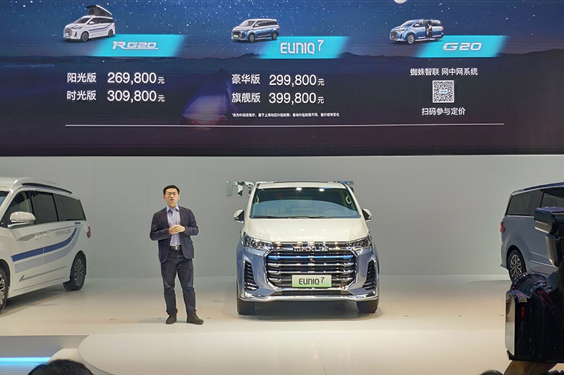 发布会上,上汽大通搭载“蜘蛛智联-网中网”系统的2021款G20、最像房车的MPV RG20、全球首款高端氢燃料电池MPV EUNIQ 7三款重磅新车齐发,其中G20主打后排舒适和独立互联网;RG20主打天窗,智能厨房;Euniq7主打氢电池环保。