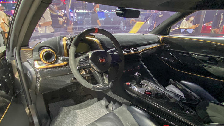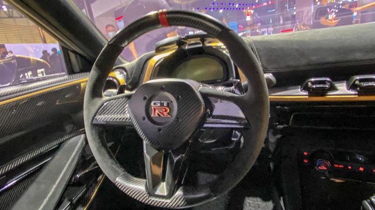 内饰方面,日产GT-R50量产版的内饰设计仍能看到原型车的影子,但它的用料显然更加考究,它采用两种碳纤维面板分别布局在中控、仪表和车门内饰板等部位,还加入大量Alcantara材质,整车的豪华质感得到明显提升。