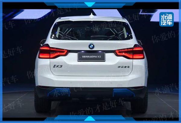 双肾型的家族式进气格栅用蓝色阴影勾勒出轮廓,并采取半封闭式设计,在减低风阻的同时,也能保留散热的功能。侧门下方的蓝色饰板贯穿前后,车尾下方还有两块蓝色的扰流板,通过这些蓝色的细节表明iX3的新能源汽车的身份。除了外观上的蓝色点缀,车内也有一些蓝色的装饰和iX3的专属标识,方向盘中央带有蓝色圆环的宝马标识、蓝色的启停按键、挡杆上精细的蓝色镶边、中央杯架前铝合金质感的iX3印记等等。