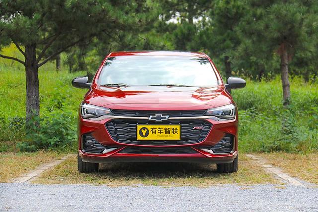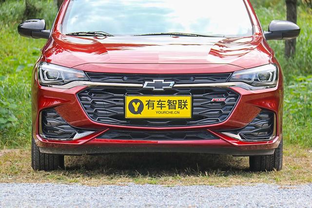 前脸看过去,蜂窝状的大尺寸进气格栅十分吸引眼球,搭配红色高亮的RS标识,为整车赋予了十足的战斗气息。一根横向的熏黑饰条自灯组下方穿出,将中网一分为二,并贯穿了经过熏黑处理的雪佛兰LOGO,合理地拉宽了车头的横向视觉宽度。