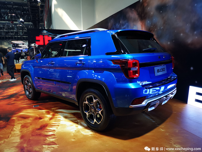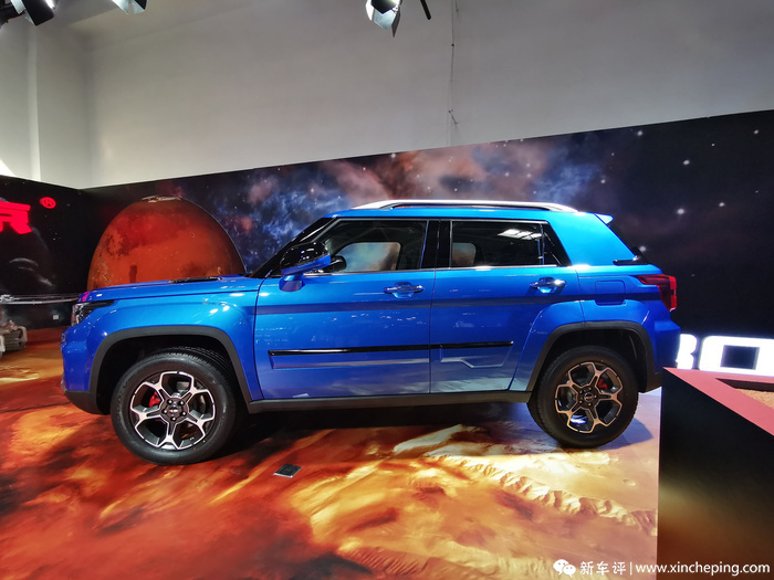 作为一款城市SUV,BJ30明显很有精神,整车运用了大量来自硬派越野车硬朗线条。A柱则用贴纸做出了悬浮车顶的视觉效果,总体来看,BJ30的设计是非常独特的。