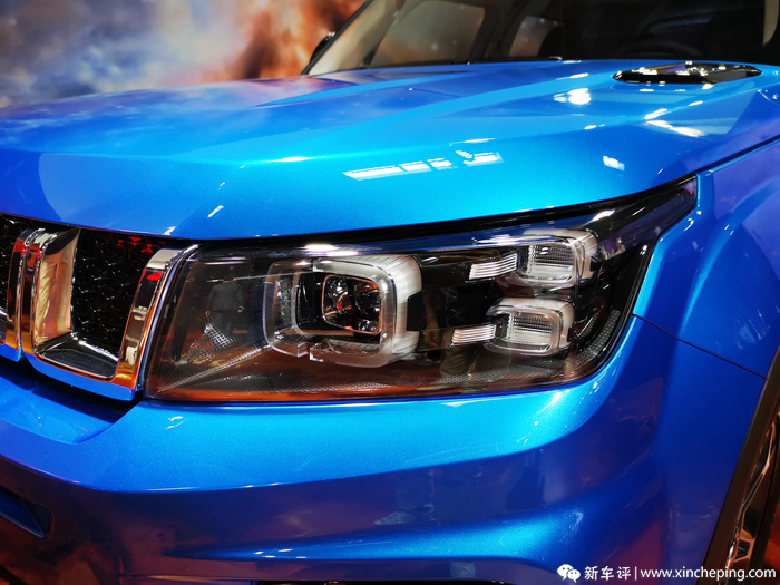 无论是大灯的造型还是中网上5个U型的镀铬装饰,都和BJ90如出一辙。下包围多出了三个圆角的矩形装饰,看起来颇有气势。