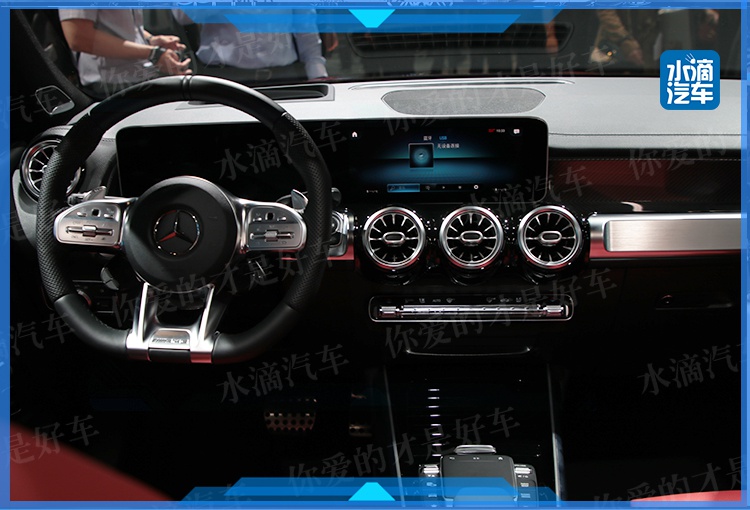 至于内饰部分,AMG GLB 35采用贯穿式液晶显示仪表,之外为了区别与普通版车型的不同,部分地方采用了碳纤维材质和红色点缀。