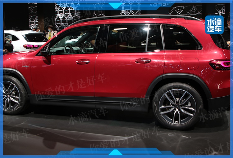 车身侧面,AMG GLB 35保持着和普通版车型一样的圆润造型,并不会给人战斗的感觉。不过好在新车搭配有全新设计的AMG多辐条式19英寸铝合金轮圈,算是突出了一定性能范儿。