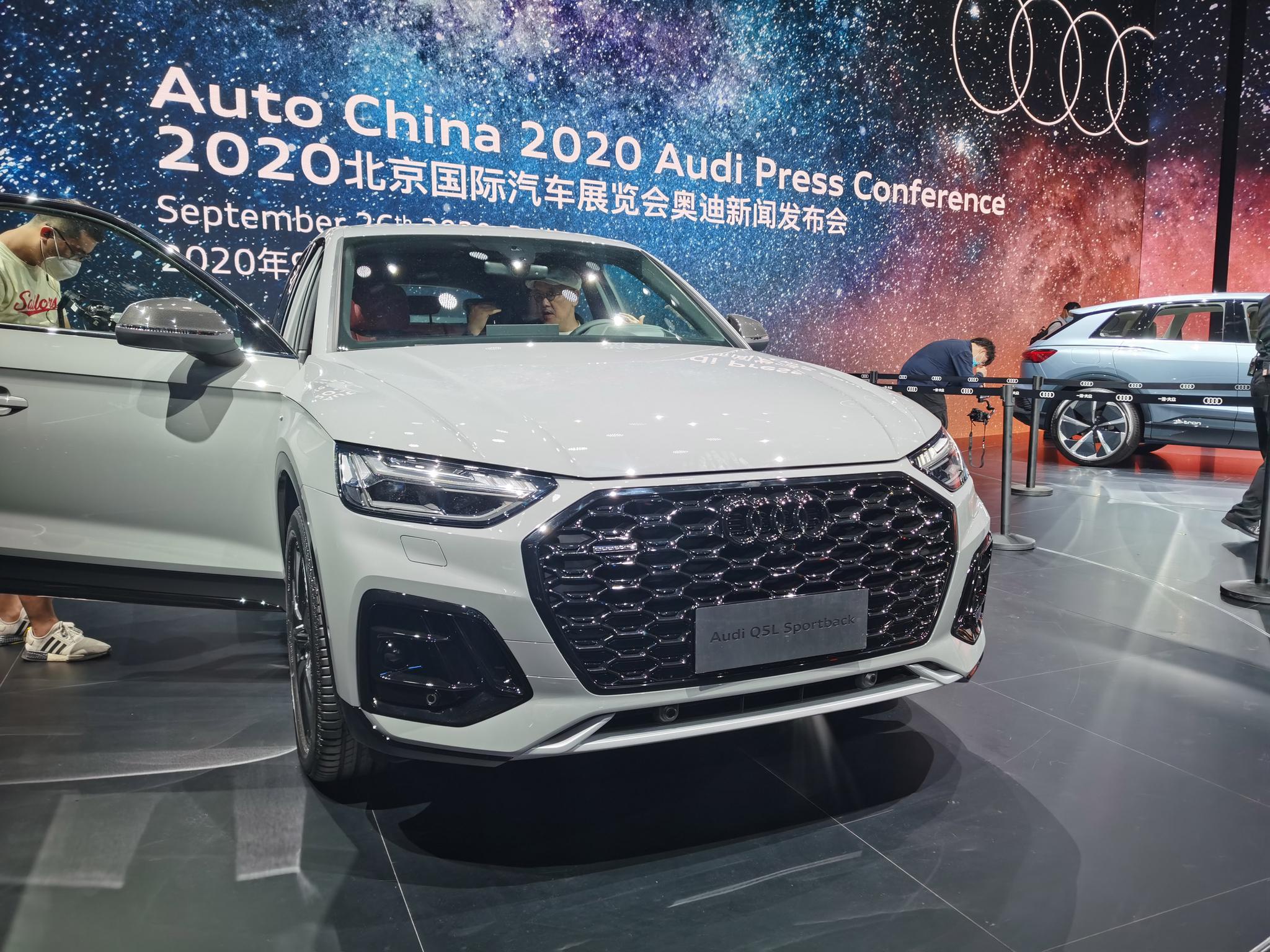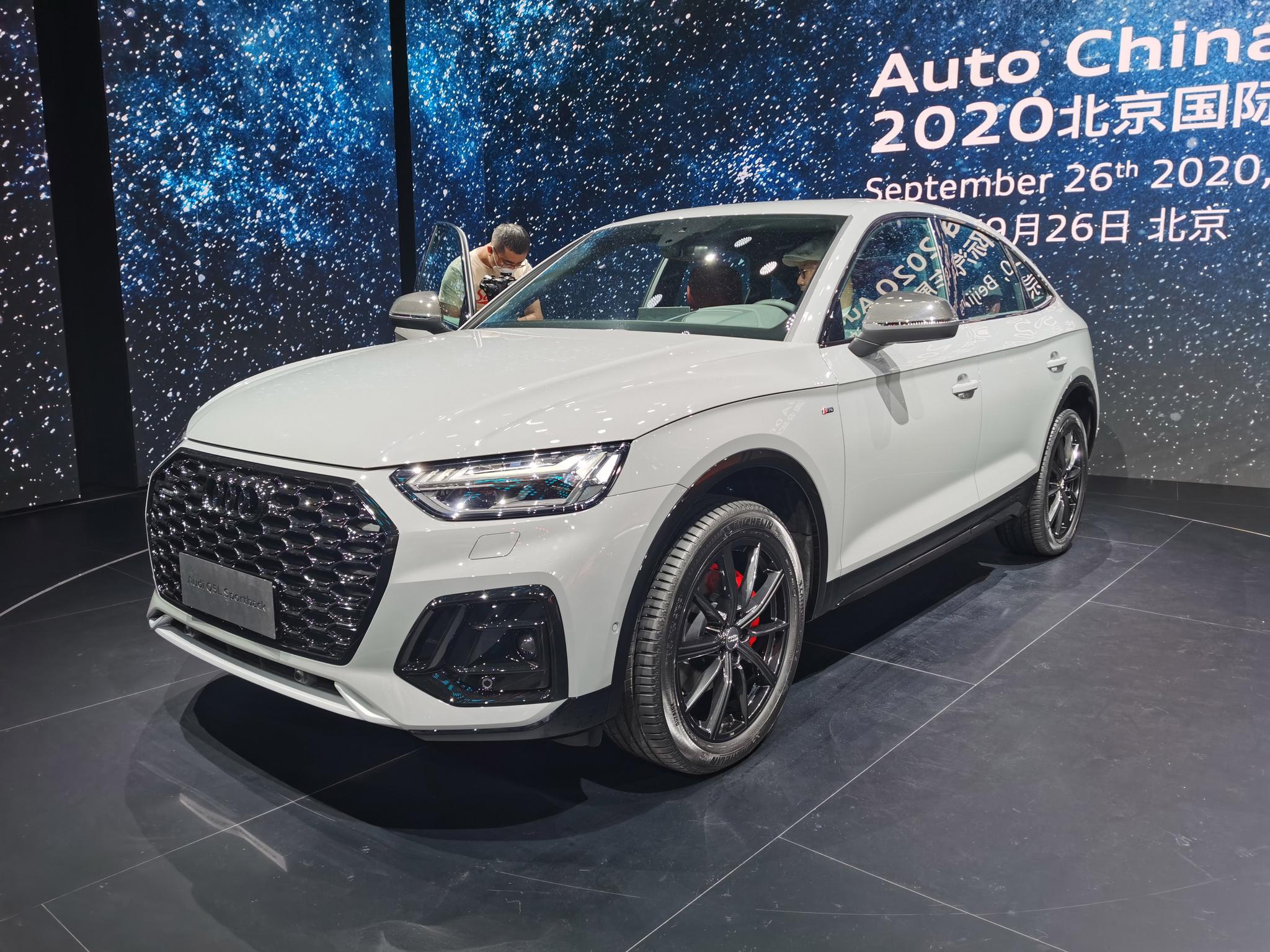 在昨天的2020北京车展首个媒体日上,一汽-大众奥迪的Q5L (配置|询价) Sportback完成了全球首发,同期该车的海外版本也会在海外推出。新车采用了与海外新款Q5相同的最新设计元素,前脸采用了更加扁平化的大嘴式格栅,内部蜂窝造型更加密集。新车的大灯变得更加修长犀利,点亮效果出色。前包围两侧通风孔饰板棱角分明,进行了黑色装饰后运动风格更加明显。
