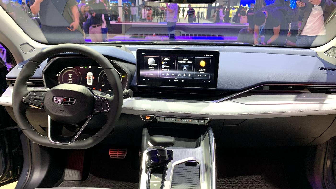内饰采用了官方称为"时空交叠座舱"的造型设计,运用较为流动且简洁的线条勾勒。配备平底三辐式多功能方向盘、12.3英寸液晶仪表以及悬浮式12.3英寸中控屏幕,中控台上方覆盖的基本上都是搪塑软性材质,中间搭配真皮包裹,做工上还是可圈可点。