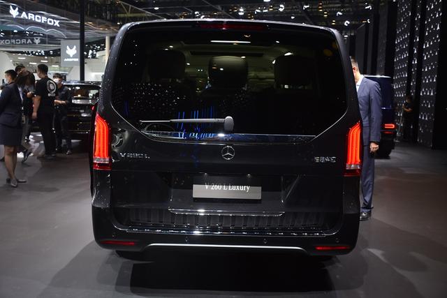车尾方面,新一代奔驰V级首先映入眼帘的是硕大的后玻璃及银色镀铬装饰条,搭配细长的导流板设计并集成高位刹车灯,看上去非常豪气。新车两侧竖式尾灯组造型格外新颖,预计在夜间点亮之后拥有不错的辨识度。