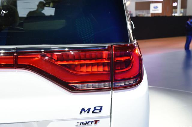 尾部整体延续老款中规中矩设计,不过在后包围以及排气处都加入了银色进行装饰,除了保持一定的精致感外,双L的造型和前脸也起到收尾相呼应,右下角尾标也更换为"M8"。